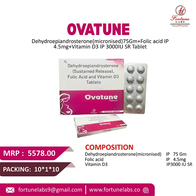 Dehydroepiandrosterone(micronised)75Gm+Folic acid IP 4.5mg+Vitamin D3 IP 3000IU SR Tablet